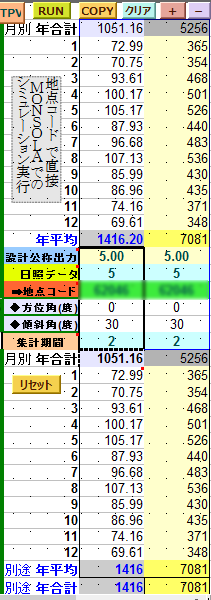 ■太陽光発電システム・発電量推定シミュレーション実行画面 例