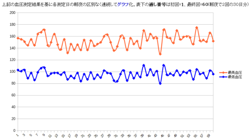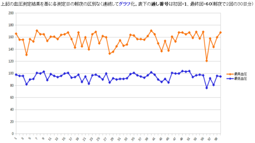 ![]() 当WEBサイト運営担当[2017年 9/2〜10/1] 1ヶ月間の血圧測定状況【血圧の表データ】 |